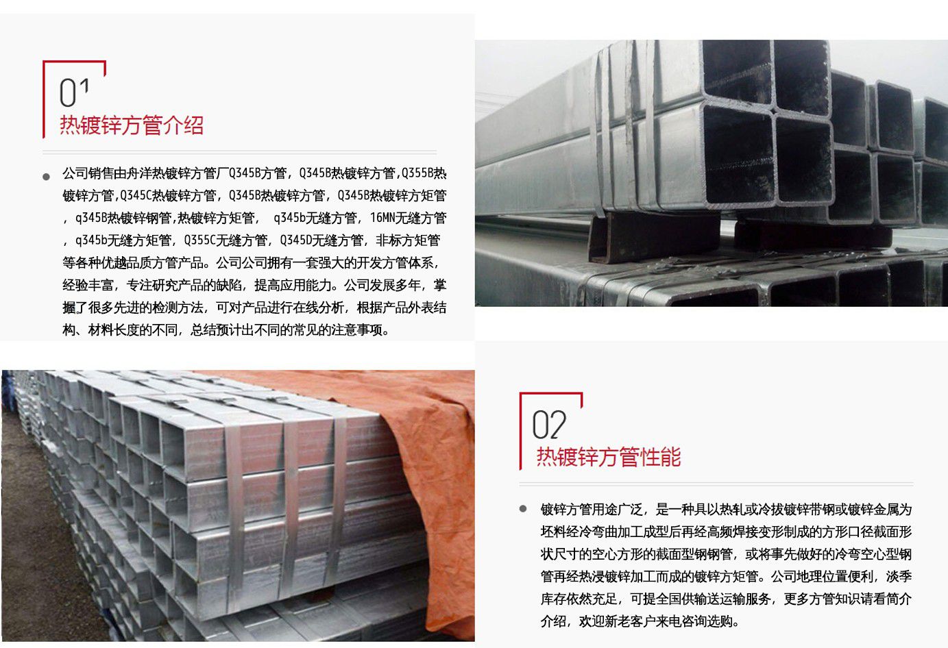 天津鍍鋅方管廠長期銷售方管,鍍鋅方管,熱鍍鋅方管,鍍鋅方管廠,鍍鋅方矩管廠家等產(chǎn)品。      公司憑借豐富齊全的規(guī)格品種,過硬的質(zhì)量,合理的價(jià)格,完善的服務(wù),不斷地受到新老用戶及業(yè)內(nèi)人士的肯定和信任,我們本著及用戶之所及,想用戶之所想的服務(wù)宗旨不斷地拼搏,進(jìn)取,在此對多年來支持我們的各行各業(yè)的新老朋友表示由衷的感謝,在新世紀(jì)與各界朋友共同成長壯大,愿我們今后的合作更加愉快!  我公司恪守“以誠信為本,譽(yù)求發(fā)展”的文化理念;“聚精會神抓質(zhì)量 一心一意求發(fā)展”的經(jīng)營宗旨,始終堅(jiān)持以“創(chuàng)新是永恒的主題,超越是不懈的追求”的公司精神。以客戶需求為導(dǎo)向、客戶要求為標(biāo)準(zhǔn),愿意以可靠的產(chǎn)品和完善的售后服務(wù),竭誠為廣大的客戶服務(wù)。...